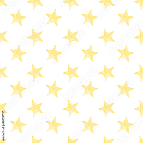 Seamless Pattern with yellow Stars on white background. Hand painted watercolor print for baby textile design or wrapping paper