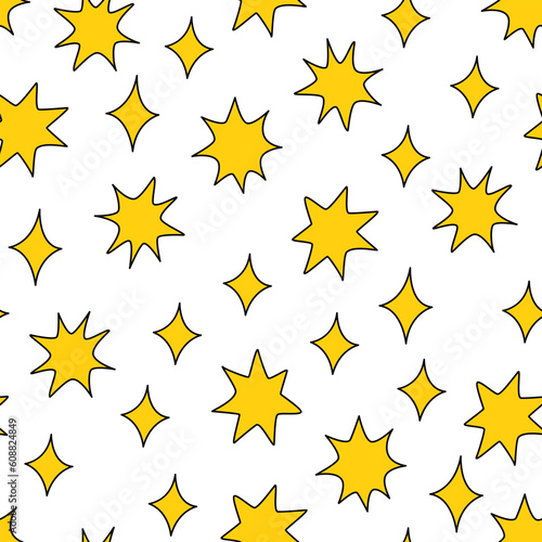 Seamless retro pattern with various stars. Vector background in hippie 1970 style