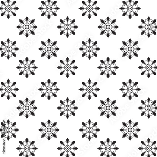Seamless silhouette Floral Pattern | Featuring Black and White Stylized Decorative Motifs | Geometric Floral Pattern | Minimalist Black Line Flower Background