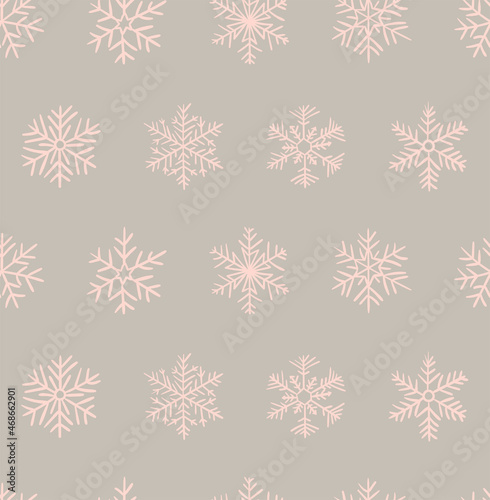 Seamless snowflake Christmas pattern. Winter holiday texture, snowfall doodle hand drawn background.