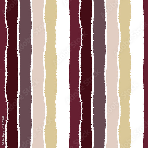 Seamless strip pattern. Vertical lines with torn paper effect. Shred edge background. Light, dark, contrast, brown, beige, white colored. Winter theme. Vector