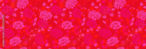 seamless, pattern, vector, floral, flower, chrysanthemum, bloom, blossom, botanical, vintage, elegant, decorative, textile, fabric, wrapping paper, wallpaper, design, print, pink, red, romantic, stylish, feminine, chic, bold, modern, oriental, detailed, ornamental, nature, leaf, flower petals, bouquet, luxury, retro, classic, spring, summer, garden, abstract, vibrant, natural, background, textile design, fashion, ornament
