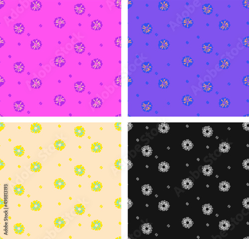 Seamless vector print design with flowers theme prepared in 4 different colors. Can be used for girl, t-shirt print, kids wear, poster, wallpaper, celebration, greeting card and invitation.