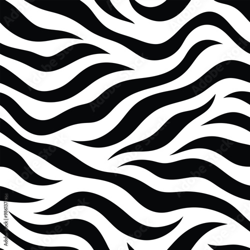 Seamless Zebra Animal Fur Pattern Vector Design.