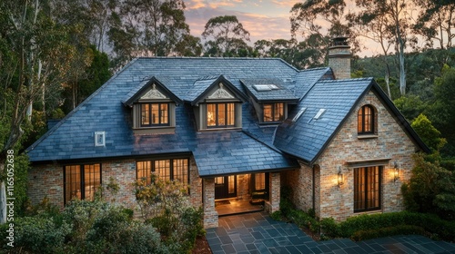 architecture, luxury, home, exterior, design, roofing, bronze, tile, evening, elegance, style, residential, contrast, ambience, landscaping, grandeur, craftsmanship, modern, aesthetic, material, detail, upscale, classic, sophisticated, outdoors, harmony, serene, texture, property, captivating, lifestyle, opulence, calmness, richness, quality, inspiration, scenic, investment, environment, contemporary, facades