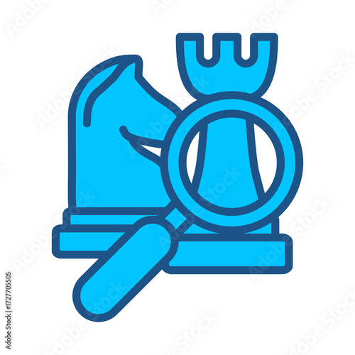 Search Icon In Blue Monochrome Flat Design, Vector Illustration