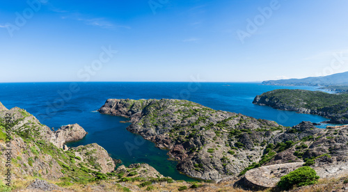 Seascape, mediterranean coastline, cliffs and bay, Cap de Creus - cape in Cadaques, Girona, Costa Brava, Catalonia, Spain.