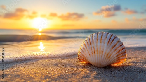 Seashell at sunset beach shore nature scene tranquil atmosphere