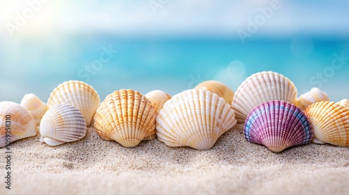 Seashell Diversity: Assorted Shells on Sunlit Sand with Varied Textures