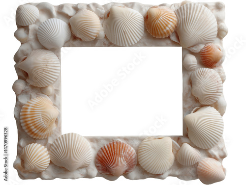 Seashell Frame: An ornate seashell frame, artfully arranged, embodies the essence of seaside charm, creating a stunning display of coastal beauty.