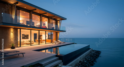 ocean, residence, twilight, architecture, home, water, luxury, pool, modern, villa, landscape, exterior, property, design, coast, deck, elegant, facades, building, coastline, tranquil, construction, contemporary, panoramic, waterfront, estate, lifestyle, scenic, serene, relaxation, vacation, peaceful, illuminated, affluent, get-away, showcase, sophisticated, real estate