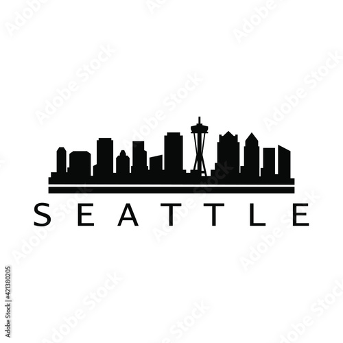travel, illustration, silhouette, panorama, sky, architecture, seattle, vector, city landscape, modern, skyline, city, us, poster, front, background, port, detailed, coast, skyscraper, downtown, shore, landmark, west, postcard, beautiful, state, america, building, urban, building, town, tower, business, sunset, abstract, blue, white, view
