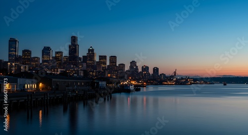 seattle, skyline, dusk, puget sound, city, urban, building, evening, waterfront, architecture, water, sky, clear, city landscape, light, harbor, travel, tour tourism, washington, scenery, scenic, destination, dark, modern, tranquil, peaceful, twilight, illuminated, view, panorama, landmark, nature, outdoors, coast, pier, dock, transportation, night