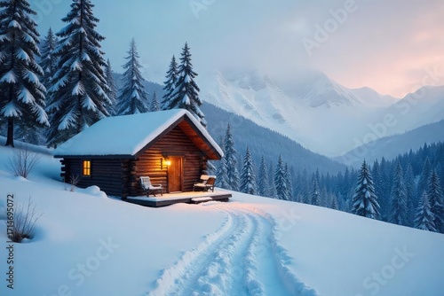 Secluded Snow-Covered Cabin Peaceful Winter Escape in the Holiday Season