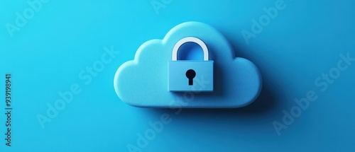 Secure Cloud Data Privacy Concept with Blue Lock and Cloud Icon on Blue Background