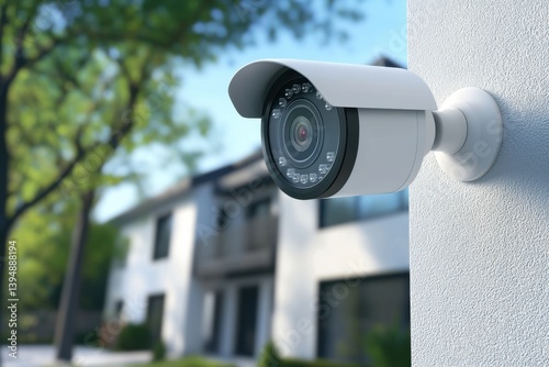 security, camera, surveillance, property, protection, home, house, building, exterior, wall, mounted, technology, safety, monitoring, system, residential, modern, estate, private, visible, device, equipment, lens, view