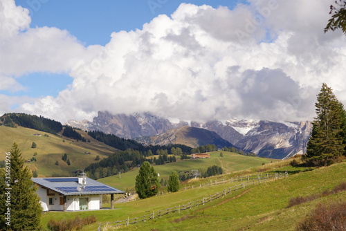 mountain, countryside, heaven, nature, cloud, summer, travel, alpen, forest, hill, view, green, grass, panorama, vale, peak, europa, snow, alpine, rock, tour tourism, tree, south tyrol