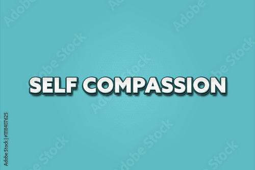Self Compassion. A Illustration with white text isolated on light green background.