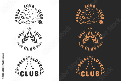 Self love club lettering badge emblem poster design. Inspirational self care quotes. Aesthetic design. Cute positive mental health text for women and men t-shirt design and print vector