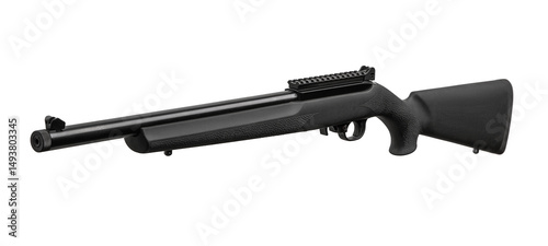 rifle, gun, weapon, firearm, black, tactical, synthetic, modern, compact, trigger, barrel, scope, rail, stock, muzzle, sleek, hunting, shooting, target, sport, range, clean, isolated, white, polymer, lightweight, safe, small, precise, mag, simple, quiet, sight, precision, design, grip, matte, minimal, training