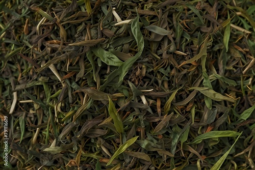 Sencha green tea background and texture, top view. Very realistic, 8k quality, hyper realistic, ultra realism
