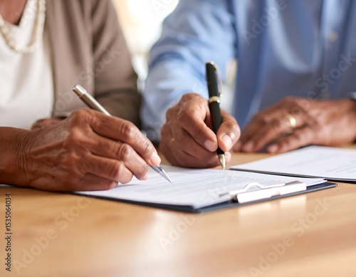 couple, senior, signing, document, hand, pen, paper, form, agreements, legal, contract, table, closeup, business, meeting, office, serious, focused, writing, detail, formal, commitment, elderly, negotiation, importance, responsibility, document, signatory, formality, careful, precise, detail, action, dedication, transaction, important