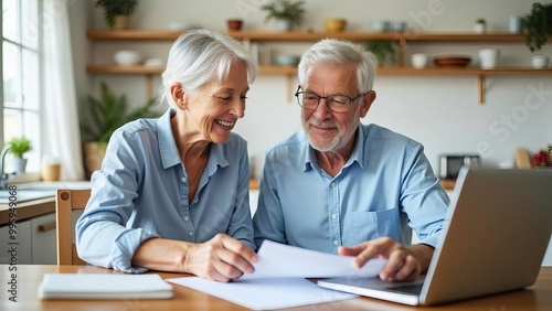 senior, couple, using, laptop, elderly, spouse, managing, finance, together, home, office, retirement, planning, technology, computer, cyberspace, online, banking, teamwork, partnership, learning, digital, literacy, modern, senior, active, ageing, lifestyle, wisdom, human relationships