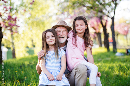 beautiful, pretty, smiling, portrait, idea, senior, old, mature, elderly, retired, 60s, man, photogenic, older, love, spring, summer, sunlight, park, outside, nature, tree, blossom, garden, people, blooming, flower, bloom, leisure, shirt, outdoors, walk, enjoying, beard, moustache, hat, front, view, looking, camera, grandfather, granddaughter, girl, small, children, offspring, grandparent, sister, long, hair