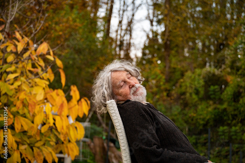 life, nap, rest, senior, man, authentic, elderly, sleepy, old, grey, hair, curly, homeless, outside, tranquil, retirement, alone, lonely, eye, closed, lifestyle, nature, autumn, foliage, siesta, colourful, casual attire, relaxation, comfortable, cosy, sleeping, one person, outdoors