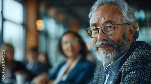 manpower, employee, ageing, diversity, workplace, work, job, senior, man, business, meeting, smile, confident, professional, office, goggles, team, collaboration, mature, experienced, leadership, success, teamwork, communication, career, retirement, engagement, inspiration, role model, opportunity, growth, development, future, positive, energy, generative, ai