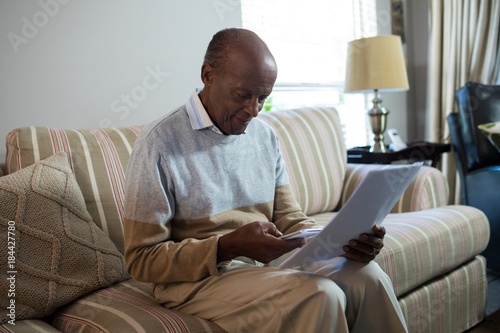 senior, man, phone, holding, document, domestic, home, wireless, room, receding, electric, mobile, cold, lifestyle, communication, concentration, temperature, technology, retirement, relaxation, smartphone, lifestyle, ethnicity, hairline, interior, sunlight, leisure, smile, sweater, reading, african, resting, to sit, elderly, retired, citizen, routine, window, light, paper, shirt, black, sofa, male, lamp, people