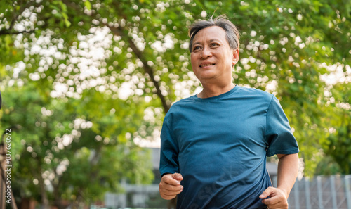 Senior old man runner exercise outdoor nature park. fitness man jogging wearing sportswear. Mature athlete man in sportswear Workout running at public park. Health and activity old man lifestyle