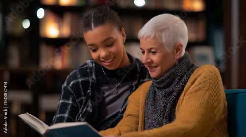 library, learning, tutoring, study, education, book, reading, senior, teenage, woman, help, student, cognition, mentor, friendship, teacher, girl, wisdom, literacy, together, academic, support, older, young, bookshelf, smiling, guidance, studying, heritage, cooperation, inspiring, lesson, youth, school, grandmother, university, connection, teaching, classroom, diversity, community, kindness, culture, storytelling