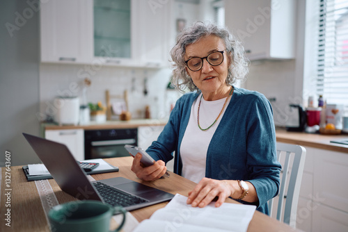 home, finance, senior, woman, savings, laptop, tax, bill, kitchen, adult, analysing, computer, document, elderly, homemaker, indoor, cyberspace, lifestyle, mobile phone, old, online, paperwork, pensioner, people, retirement, smartphone, white, wireless technology