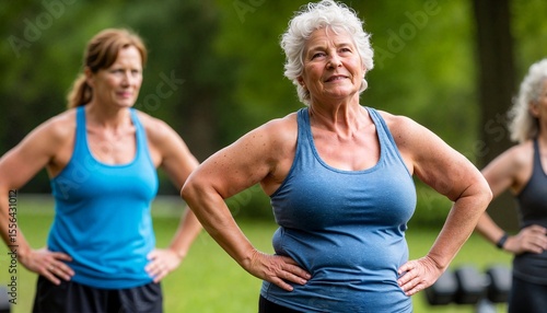 senior, woman, exercise, fitness, class, group, active, physical exercise, health, vitality, training, motivation, community, empowerment, physical, lifestyle, determination, smiling, engagement, routine, togetherness, support, energy, teamwork, strength, wellness, enjoyment, positive, cheerfulness, recreation, relaxation, friendship, coordination, balance, well-being, cardio, resilience, life events, nature, sport, park, outdoors, healthy, fit