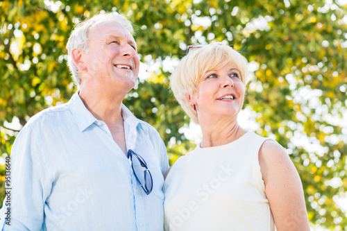 Senioren Paar, Frau und Mann, machen Spaziergang