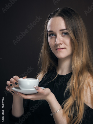 Sensual portrait of a beautiful girl with a Cup of coffee or tea.