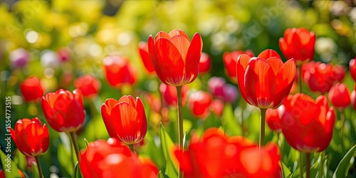 tulip, red tulip, spring flower, garden flower, red flower, tulip field, sunny day, garden, photo, image, digital artwork, floral pattern, closeup, detail, high-quality