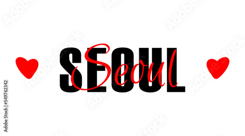 Seoul city name typographic print. Travel lettering card isolated on white background. Beautiful t-shirt print template with text.