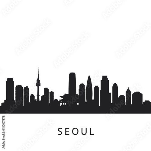 seoul, skyline, silhouette, korea, city landscape, city, urban, building, architecture, landmark, travel, tour tourism, asia, capital, modern, tower, skyscraper, vector, illustration, design, graphic, black, white, icon, symbol, famous, destination, background, isolated, korean, culture, city landscape, travel destination, south korea, journey, vacation, trip, sightseeing
