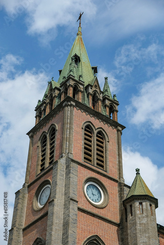 Seoul, South Korea - June 22, 2023: Myeongdong Cathedral is the community of the Roman Catholic Church in Seoul, South Korea.