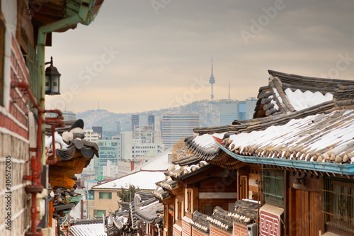 seoul, south korea, skyline, city, daytime, day, cold, location, place, south, korean, asian, asia, architecture, historical, history, old, district, season, winter, snow, scenery, scenic, scene, view, alley, road, tower, culture, ancient, building, tour tourism, travel, architectural, city landscape, downtown, historic, home, house, korea, landmark, neighbourhood, residential, street, traditional, village, way