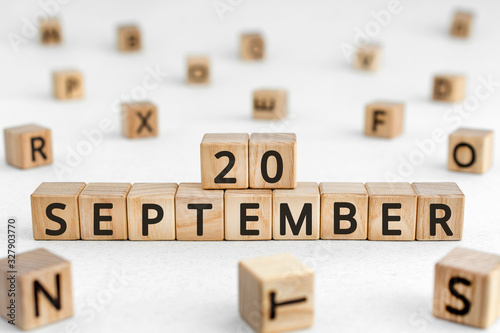 September 20 - from wooden blocks with letters, important date concept, white background random letters around