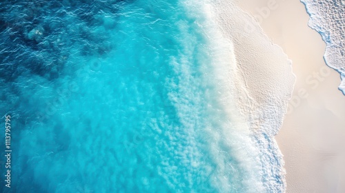 Serene Aerial View of Turquoise Ocean Meeting Sandy Beach Shore