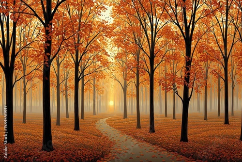 autumn, forest, tree, fall season, nature, sunset, pathway, timberland, scenic, serene, peaceful, natural, landscape, outdoors, autumn color, sunlight, tranquil, beautiful, seasonal, leaf fall, autumn leaf, tree trunk, calm, picturesque, vibrant, yellow leaf, mist, morning light, hiking, natural beauty, climate, environment, season, serenity, relaxing, wilderness, calmness