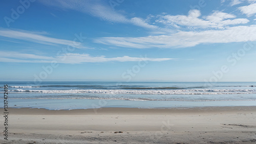 Serene Beach Landscape With Gentle Waves And Clear Blue Sky