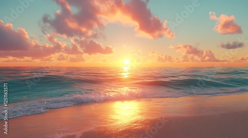 Serene Beach Sunset with Gentle Waves