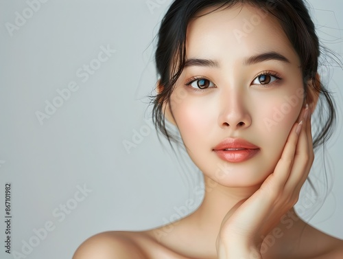 Serene Beauty Portrait of a Radiant Asian Woman with Glowing Skin and Elegant Makeup