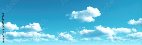 Serene blue sky with soft, fluffy white clouds scattered across the horizon, a peaceful and calming vista