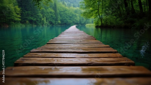 Serene Boardwalk Over Crystal Clear Water in Plitvice Park